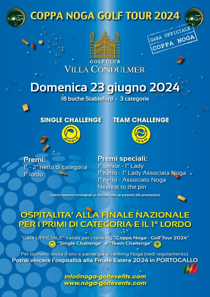 18 buche stableford a 3 categorie. Costo iscrizione esterni € 70, Soci € 20. Gara con finale italiana